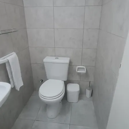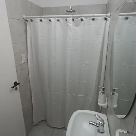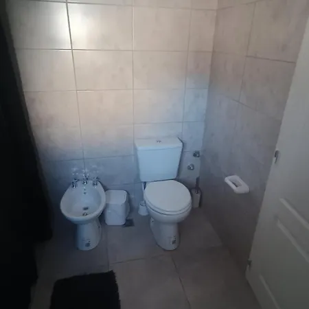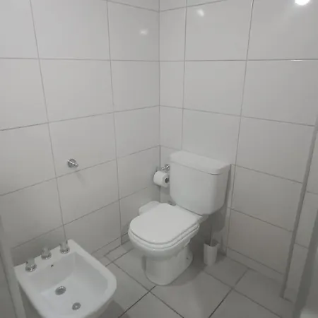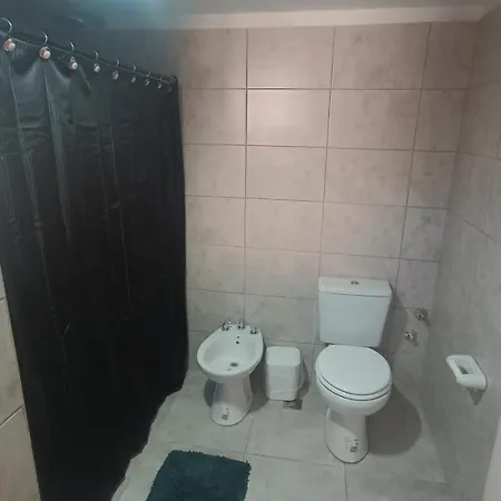 Vissa rum på vandrarhemmet i Neuquén har ett delat badrum med en bidé och en dusch samt vitrinskåp.